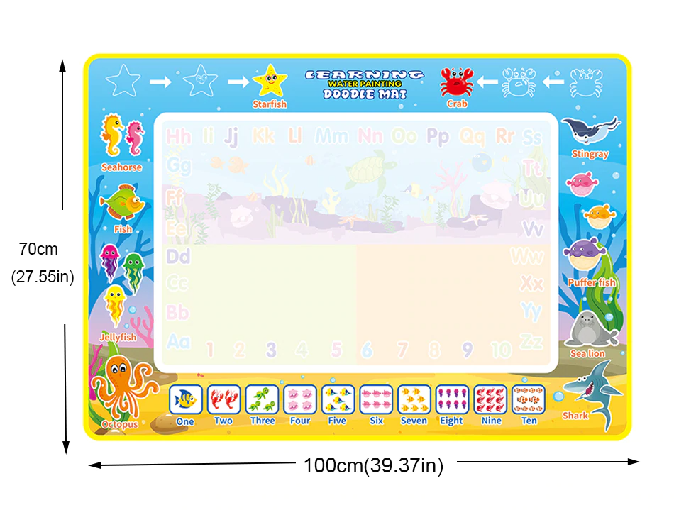 Encha a caneta mágica com água limpa e desenhe no tapete mágico de desenho. Depois de 3-10 minutos, ele desaparece magicamente e as crianças podem começar tudo de novo.