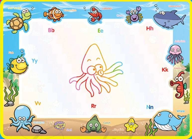 Encha a caneta mágica com água limpa e desenhe no tapete mágico de desenho. Depois de 3-10 minutos, ele desaparece magicamente e as crianças podem começar tudo de novo.